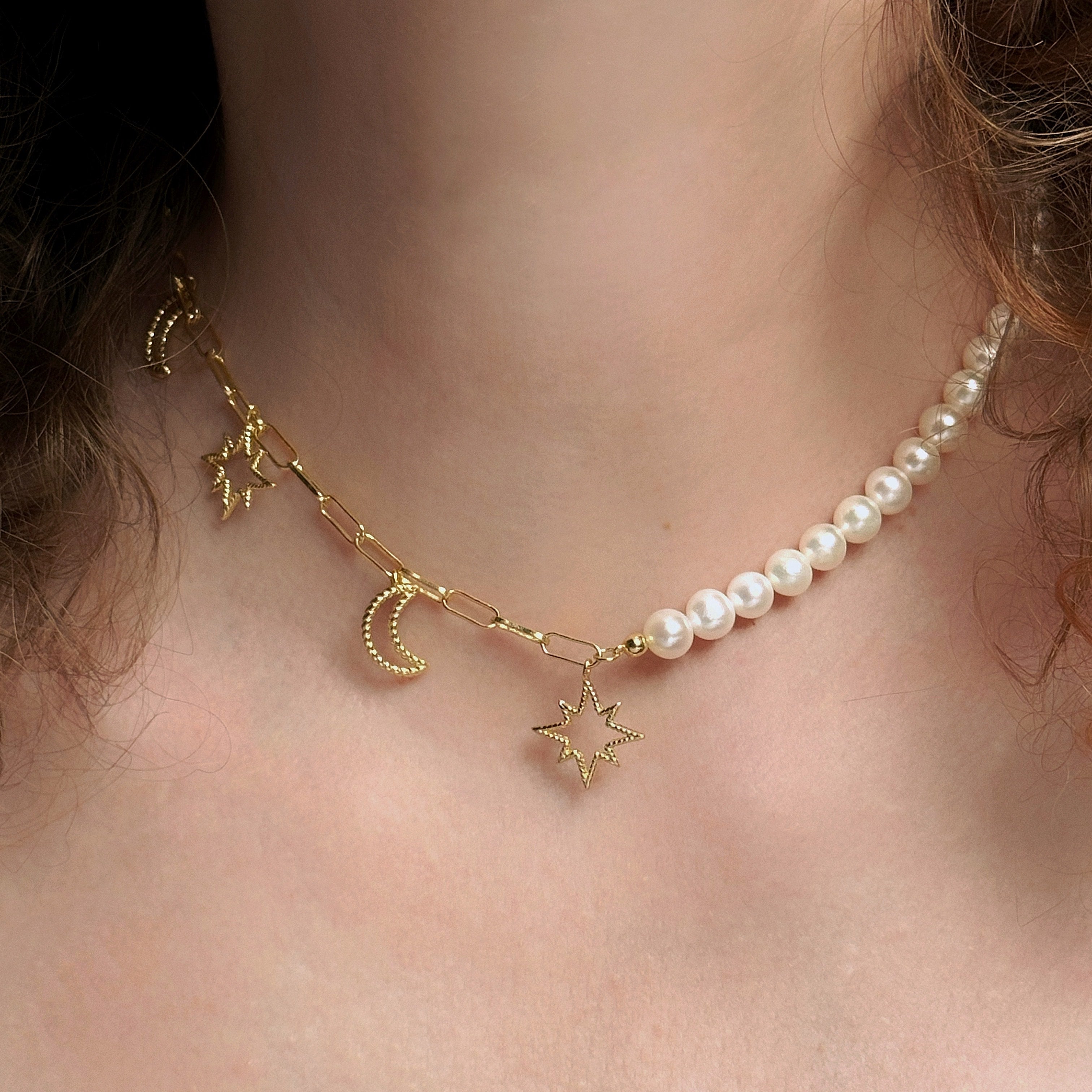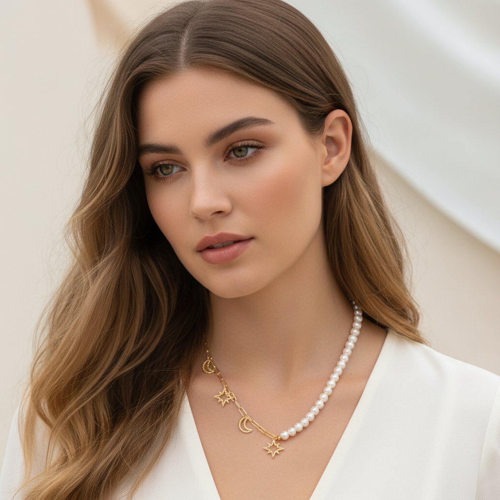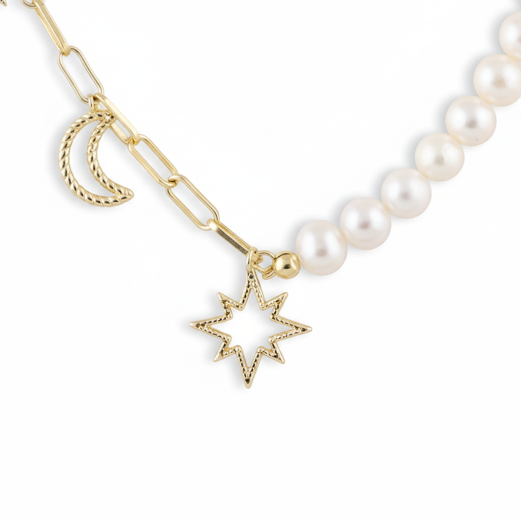 Ogrlica s biserima i privjescima M-O-O-N-Light